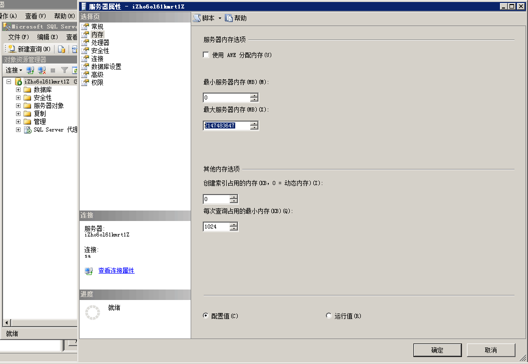(四)检查是否部署sqlserver数据库,最大服务器内存是否限制