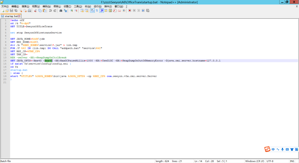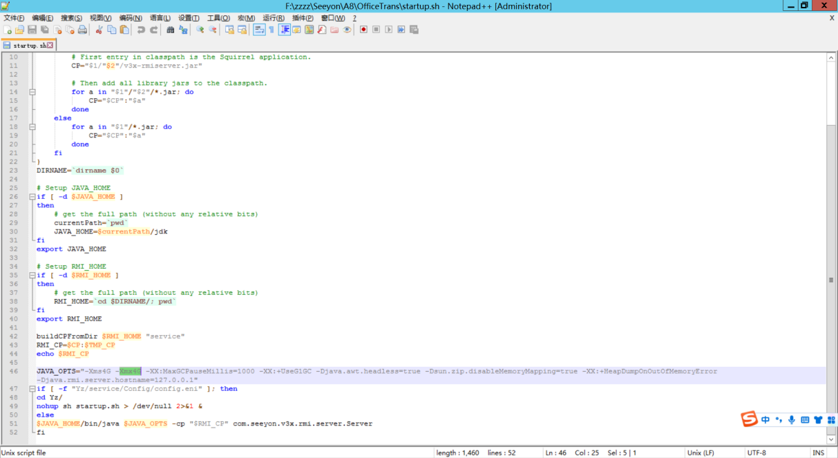 V5协同服务,安装程序自动调整JVM内存为物理内存一半,最小4G