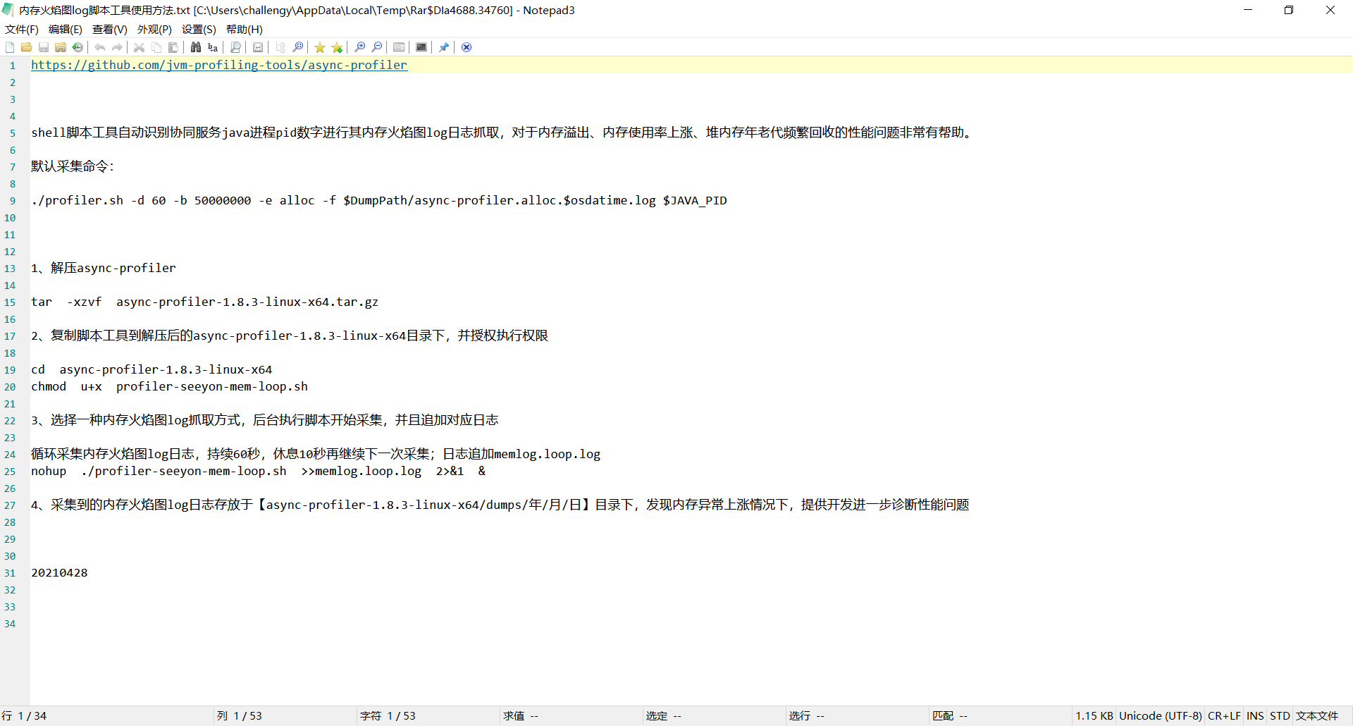 (三)Linux系统下协同服务内存增量分析 某一段时间V5协同服务java进程内存占用上涨,系统并未宕机但出现卡顿,分析此类问题需要借助async-profiler。