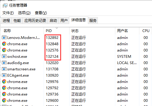 windows 2008以上版本:任务管理器—详细信息—右建点击列名称—选择列