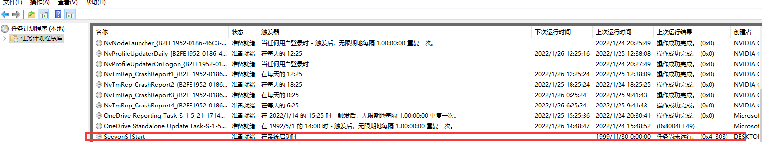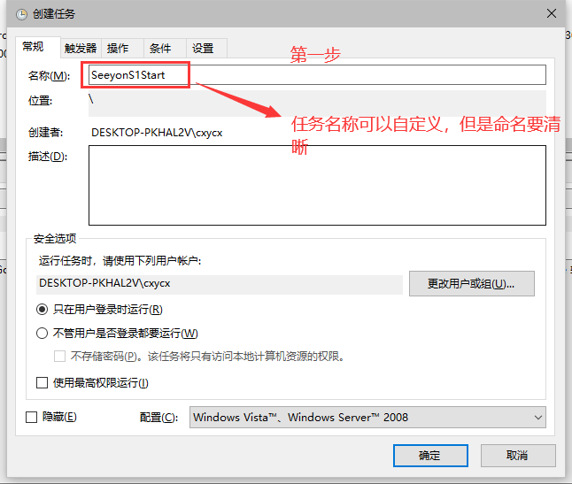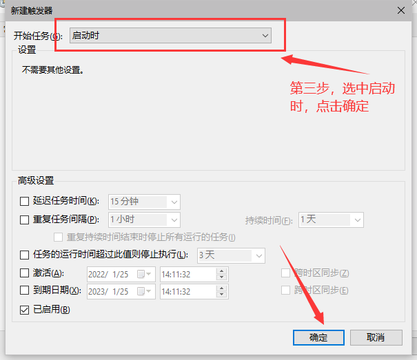若执行注册服务时报错,可通过windows的定时任务实现开机自启动。