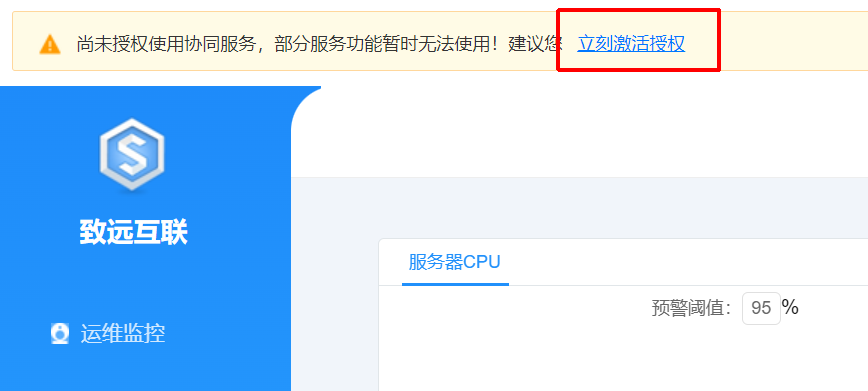 通过【服务授权】菜单进入,或者点击【立刻激活授权】: