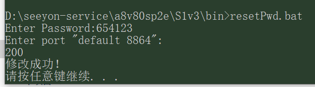 通过S1/bin/resetPwd.bat(windows环境为resetPwd.bat,linux环境为resetPwd.sh)进行密码修改。