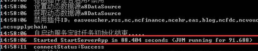 启动完成可在命令行或日志中查看到:Started StartServerApp ...... 的信息。