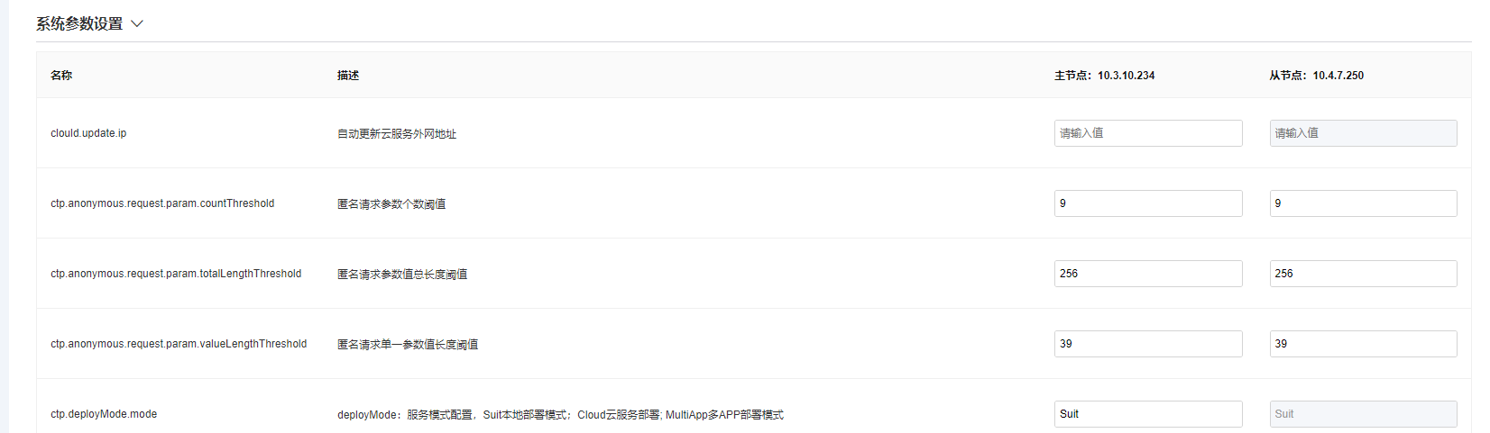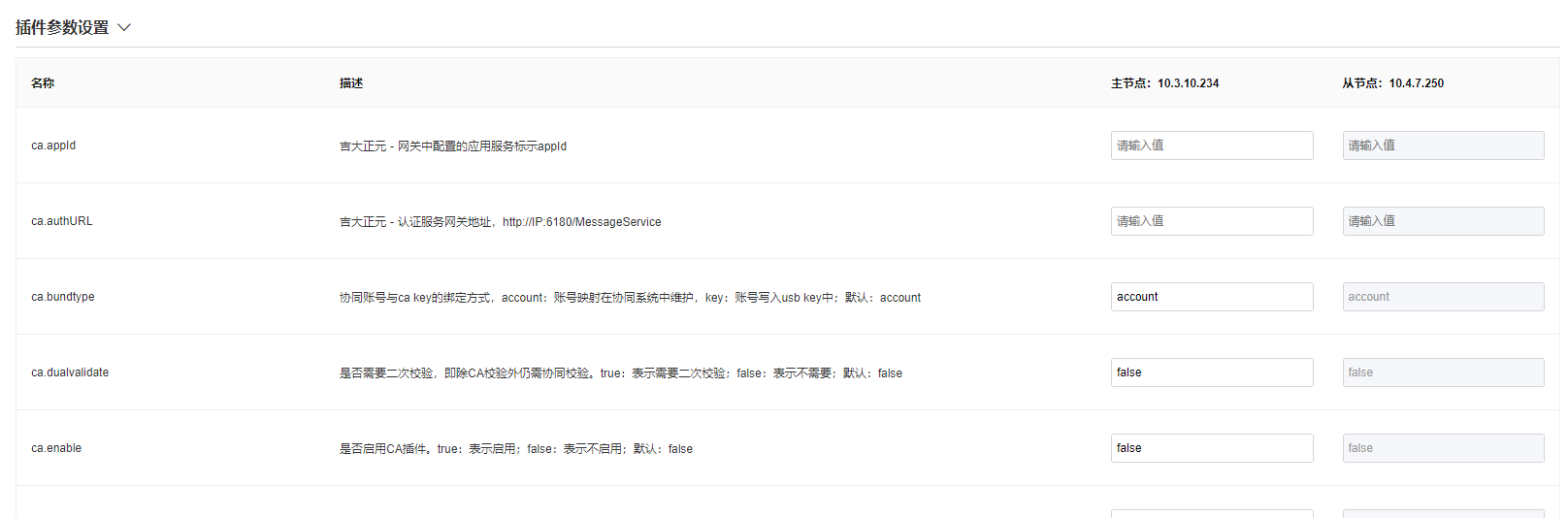 若单机模式下则只有单节点一列配置,集群下可配置所有节点的参数