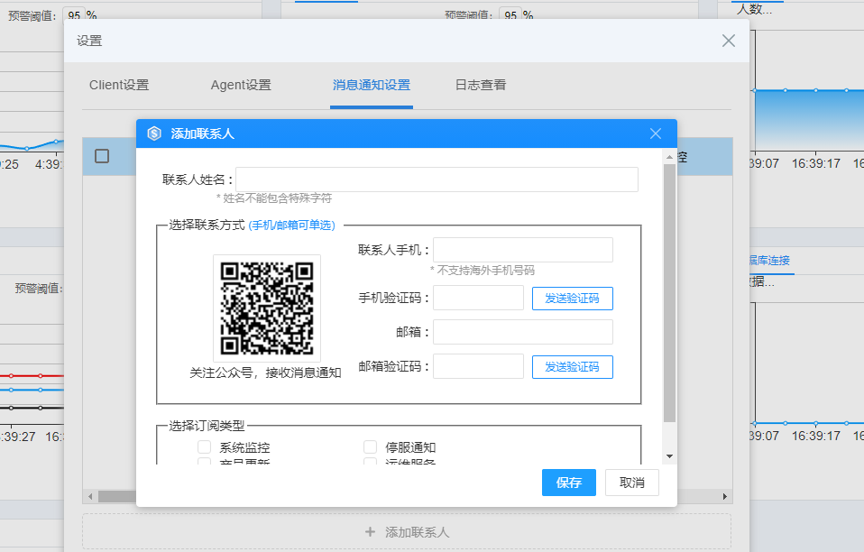 运维监控:提供服务器及服务的资源监控,结合消息通知设置,资源超出阈值设置时自动发送消息提醒。消息通知支持:短信、邮件、微信。