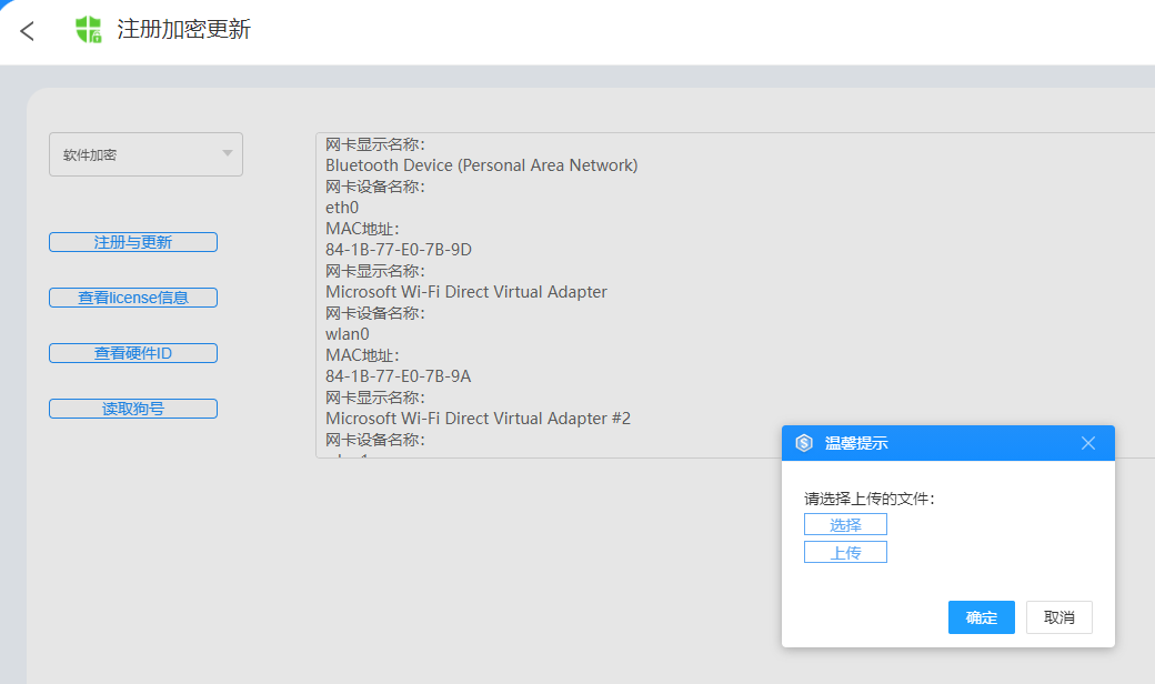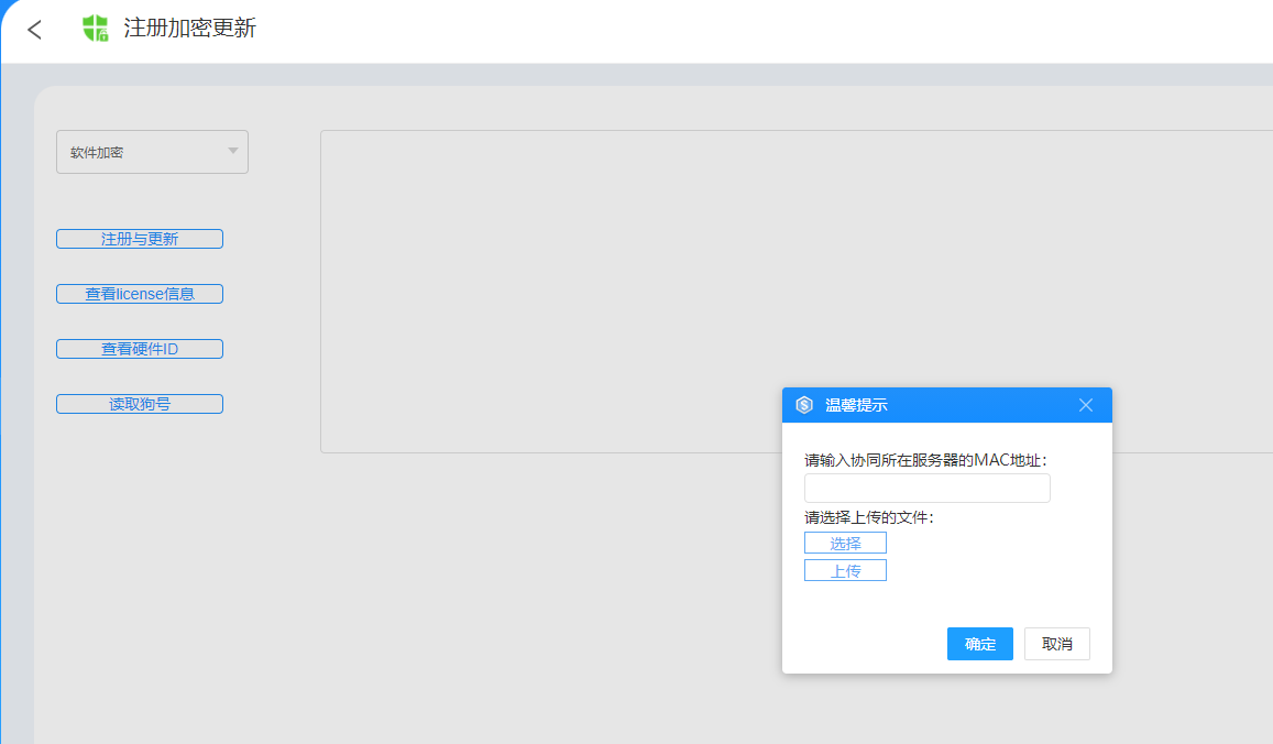 第三步:注册及更新在使用时将弹出MAC地址输入框,支持绑定其他服务器MAC地址(如:Linux系统服务器、无法连接外网服务器);