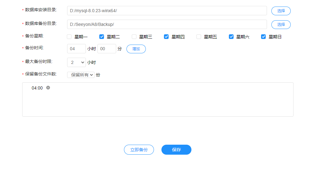 每次保存都会将一些配置修改记录保存下来,如协同的端口,最大最小线程、Xmx信息,高级配置信息、微服务参数配置信息等