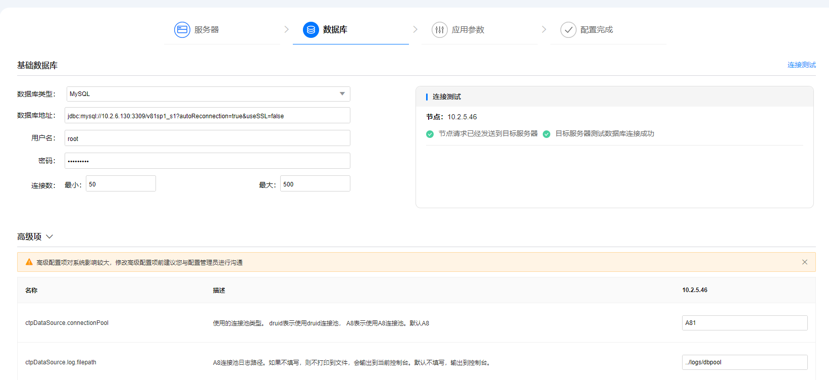 此处与数据库页面的高级项配置保持一致,修改一处,另一处则随之改动