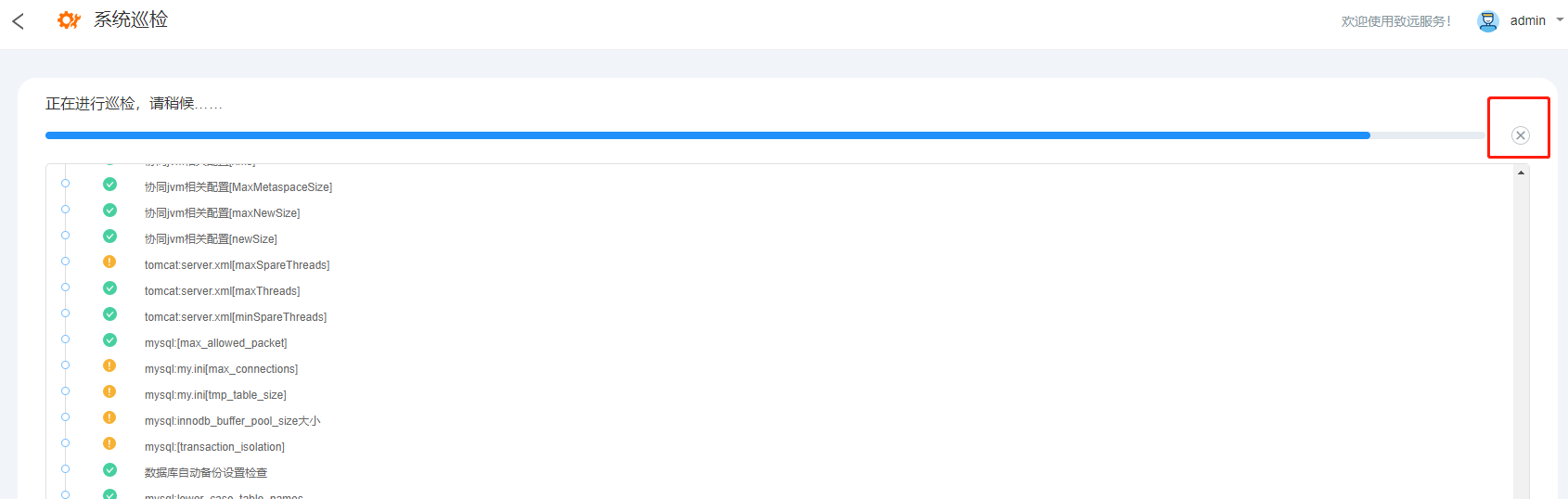 一键巡检:对协同连接的数据库、所在操作系统、网络、服务关键参数执行检查。