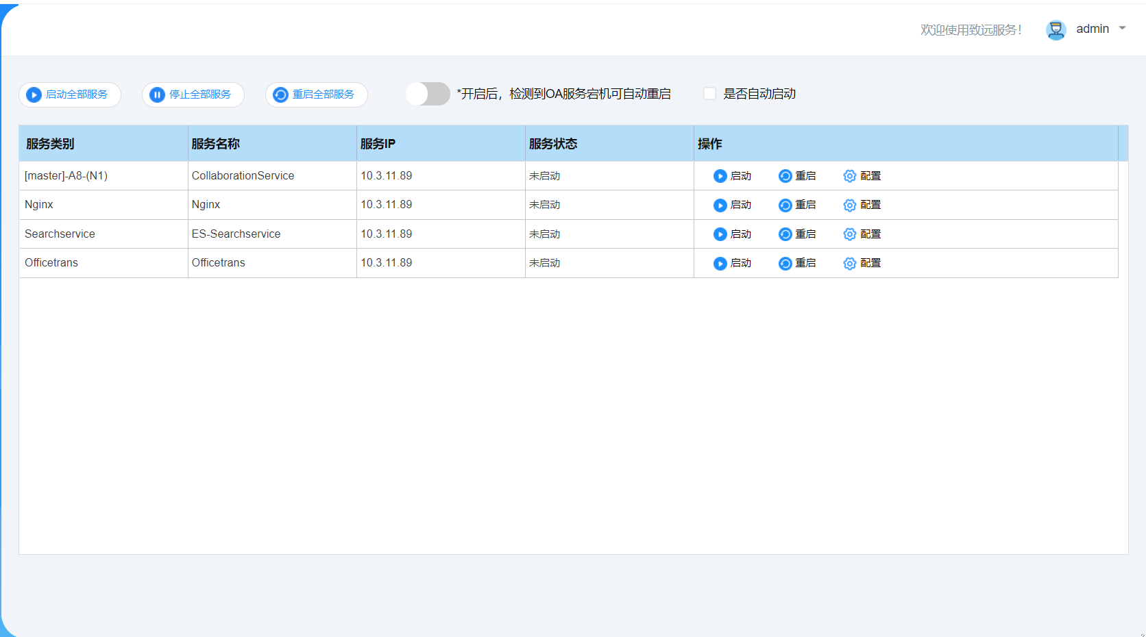 服务启停配置:支持协同服务、微服务的服务启动、停止、配置