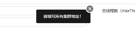 ③切换到集群模式下,需要配置所有节点信息,否则无法保存,提示信息如下
