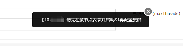 ②切换到集群模式下需要先在所有节点安装S1,并启动,否则无法同步其它节点配置,提示信息如下
