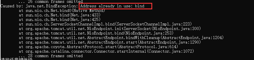 S1启动失败,并且在启动窗口的最后部分出现Address already in use: bind