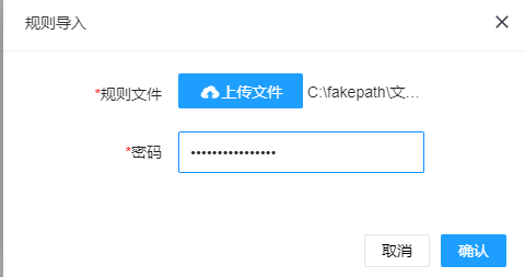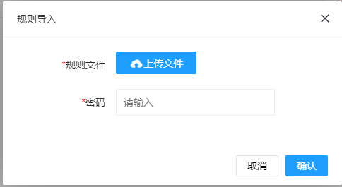 点击上传文件,输入密码,点击确认,显示导入规则成功则导入成功。