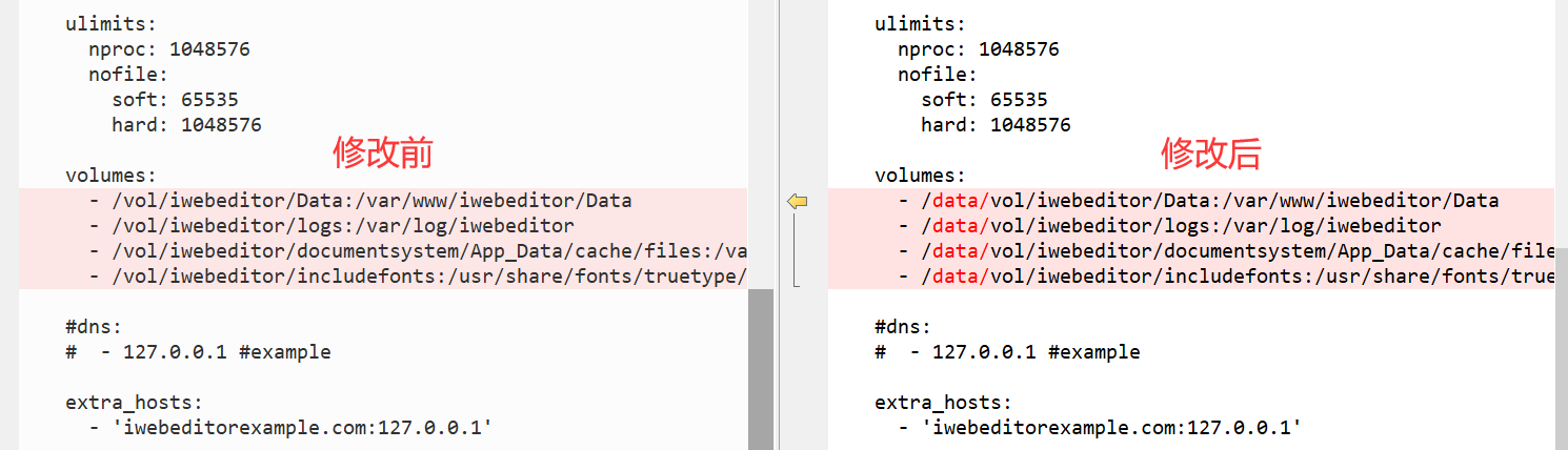 2、给extra_hosts添加一项自定义的域名到 IP 地址映射,然后重启编辑器的服务(参考2.6章节)。
