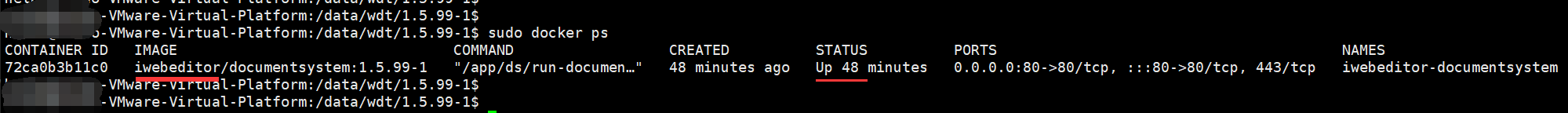 终端执行docker ps -a |grep iwebeditor可以看到文档通已经变成了新版本: