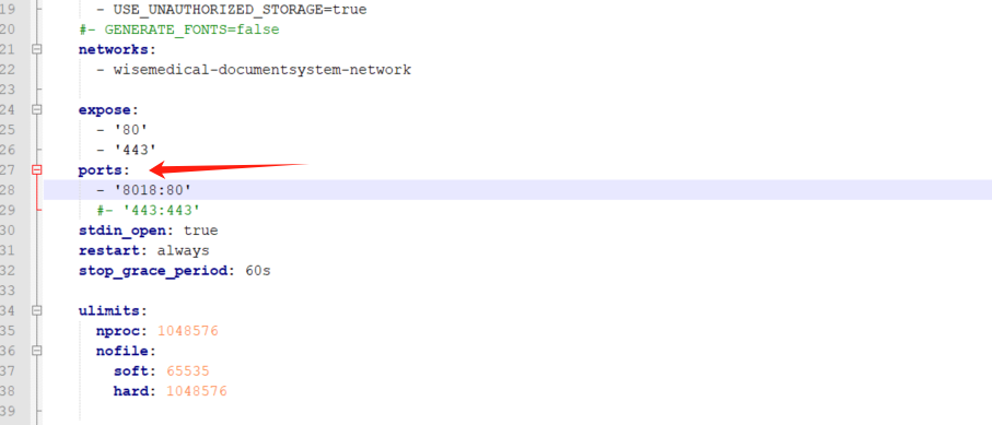 那么可以修改启动配置文件docker-compose.yml,有两种方式修改: