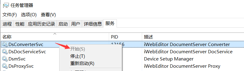 说明RabbitMQ服务被关闭了,参照下图,在服务管理器中将其启动,然后重启iWebEditor DocumentServer DocService