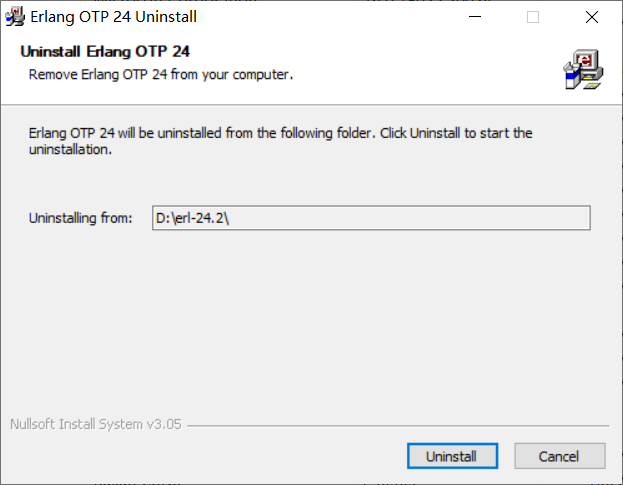 Erlang卸载:确认安装路径无误后,点击Uninstall