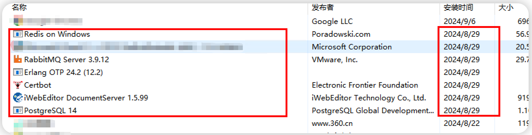 文档通在线编辑服务依赖如下第三方服务,会随部署程序自动部署,建议不要和其他业务系统共用同一操作系统环境,以免引起冲突: