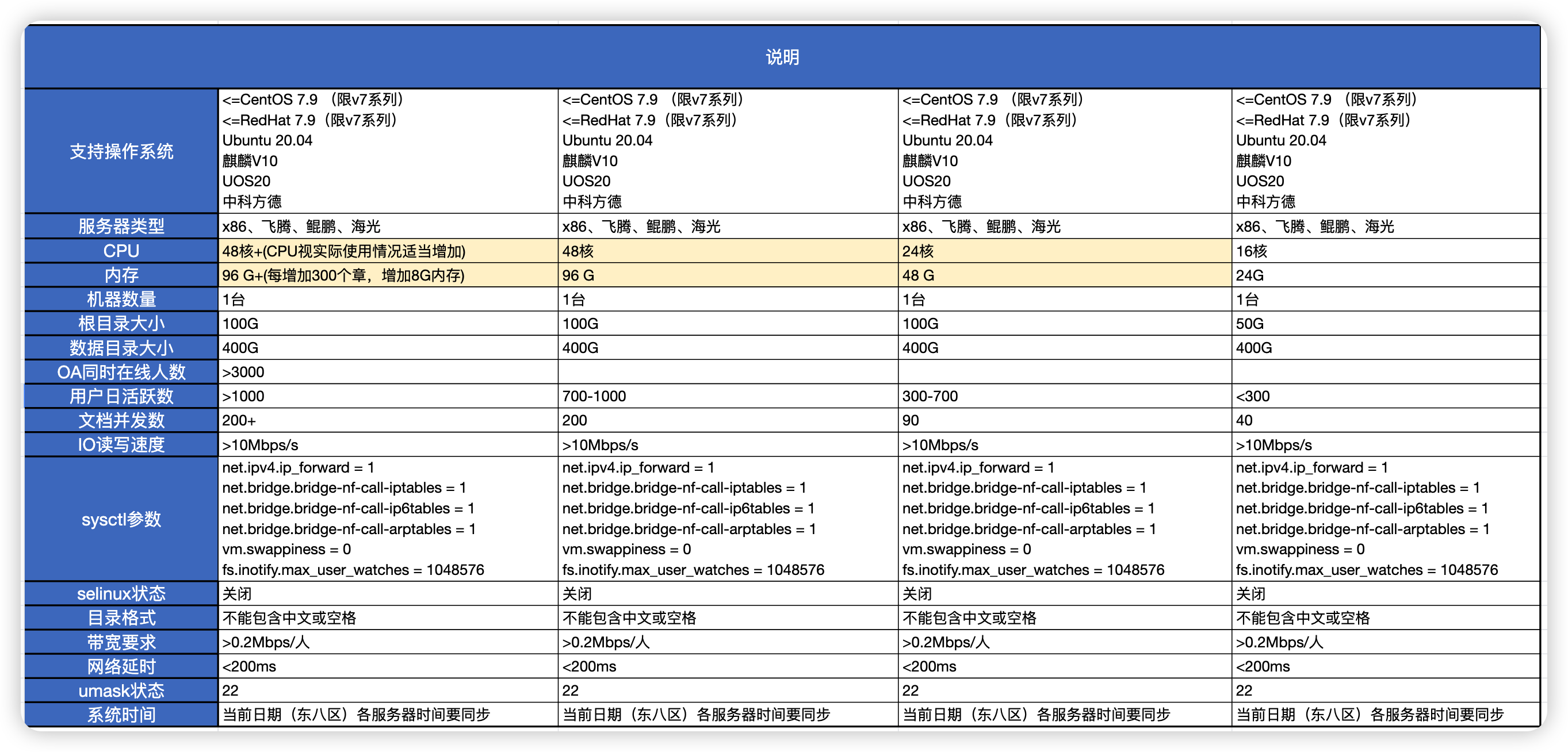不同用户数对数科服务器配置要求不同,建设初期请按照OA同时在线人数申请与之匹配的服务器资源,后续再根据运行情况做灵活调配。