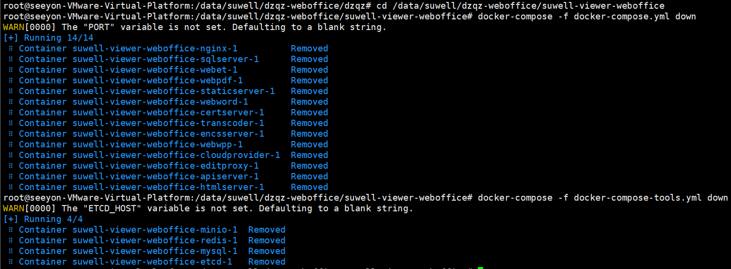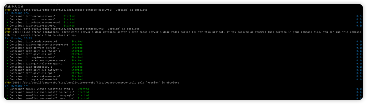 修改当前路径下 docker-compose.yml 和docker-compose-base.yml 以及/data/suwell/dzqz-weboffice/suwell-viewer-weboffice 路径下的docker-compose.yml 和docker-compose-tools.yml