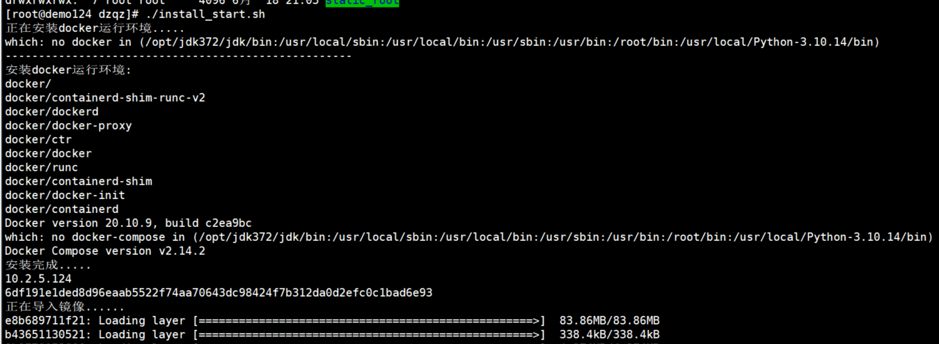 安装包自带docker和docker-compose,安装过程中识别已安装docker组件会自动跳过,如不存在会自动安装。