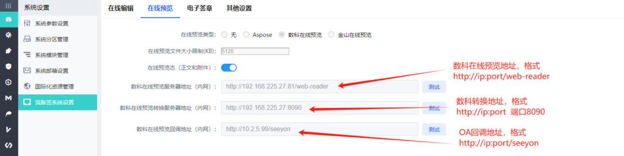 excel预览和word预览的实现方式有差异,采用了内外网配置方案,除了OA系统管理员账号流版签分别配置内外网地址外,还需要修改数科预览服务配置,具体操作参考如下步骤: