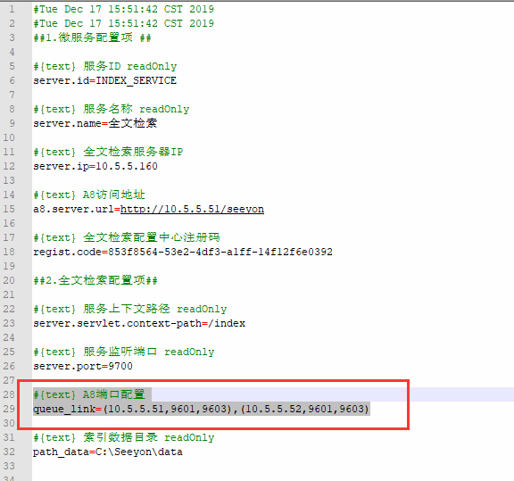 保存配置后,相关信息写入协同系统安装目录base\conf\plugin.properties文件,重启协同系统服务,使之生效。