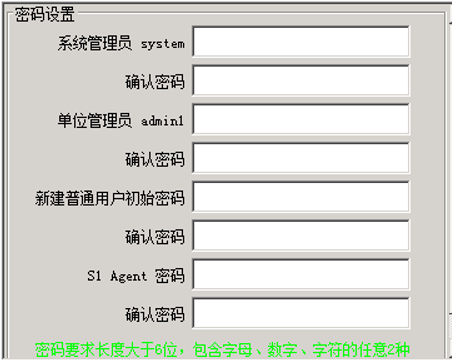 第六步:开始安装,安装完成后,出现账号密码设置界面,请设置各管理员、普通用户以及S1Agent密码;
