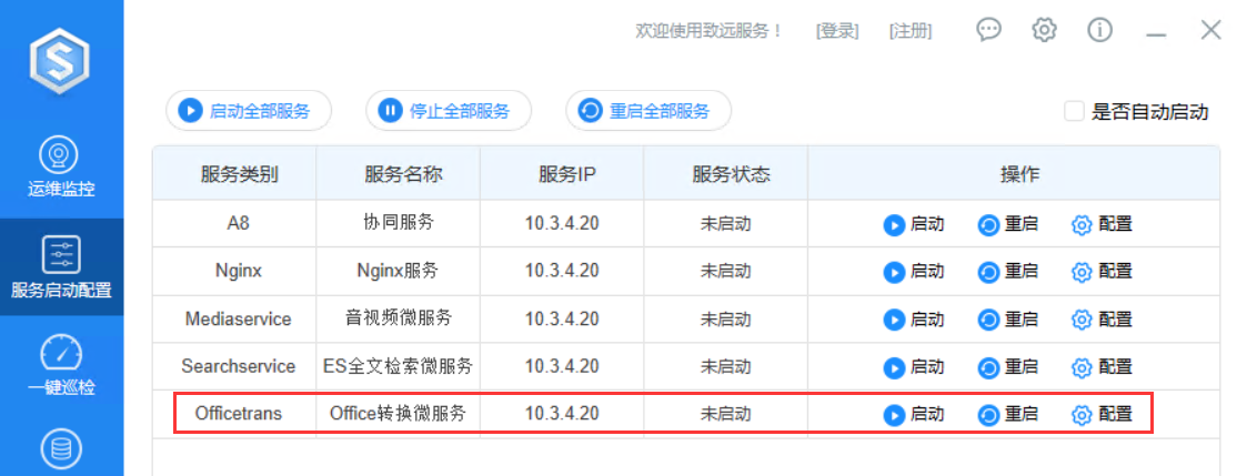- 使用S1启动OfficeTrans服务,或使用以下shell脚本启动:
