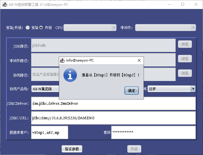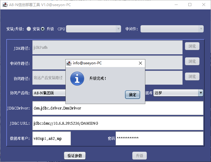 信创部署升级工具支持A8-N产品序列,在信创环境下的数据库自动化升级,支持人大金仓,达梦数据库。