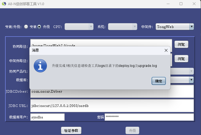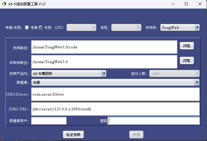 信创部署升级工具支持A8-N产品序列,在信创环境下的自动化升级,支持人大金仓,达梦、神通、MYSQL、SQLSERVER、ORACEL数据库。