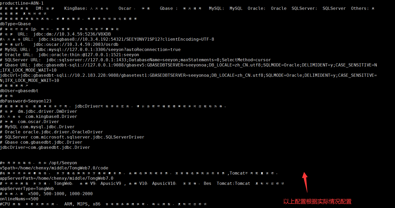 JDBC URL修改ip为需要部署的数据库ip,端口对应数据库的端口,人大金仓数据库,请修改后面的数据库名,达梦数据库需根据实际创建的实例名修改SEEYON的值