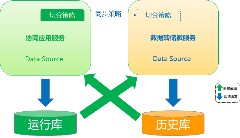数据转储微服务的基本思想就是把协同系统的数据库水平(横向)切分出一部分历史数据放到另一数据库(分库)服务器上,从而缓解单一数据库的性能问题。