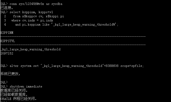 SQL> alter system set "_kgl_large_heap_warning_threshold"=52428800 scope=spfile;