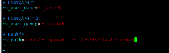 在登录Linux系统后,进入es-upgrade 目录下,编辑脚本需要的配置文件 es-upgrade.properties,添加或者修改相应的配置项,如下 图,各配置项对应的说明: