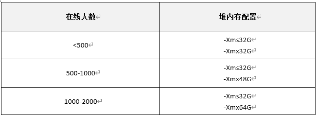 建议中间件的JVM参数按照以下标准进行调整(调整方法参考以下章节各中间件的jvm调整描述):