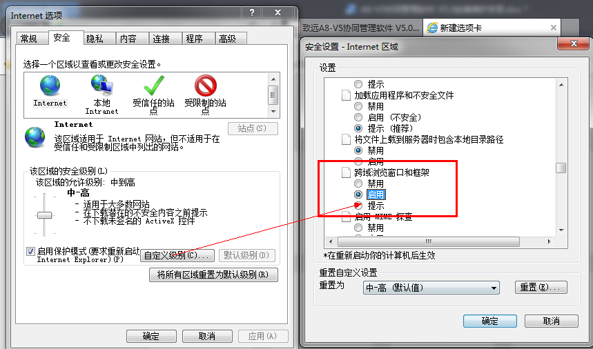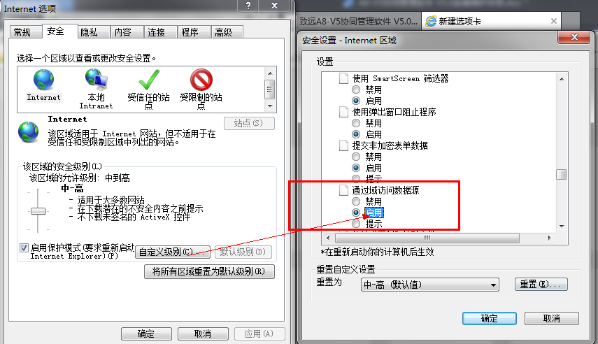 假如A6和A8在同一个服务器上,就做同域配置,配置步骤和不同域部署的方式二(非代理部署)一致,只是不需要修改浏览器设置中的启用域的设置。