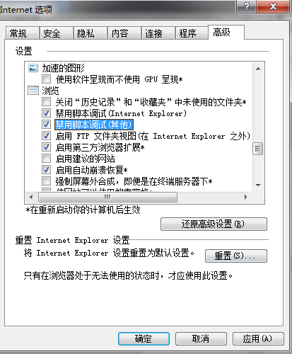 - 不管使用方式一还是方式二,都建议不打开IE调试(浏览器默认配置就不开启),如果打开,可能存在无法解决的js报错问题。