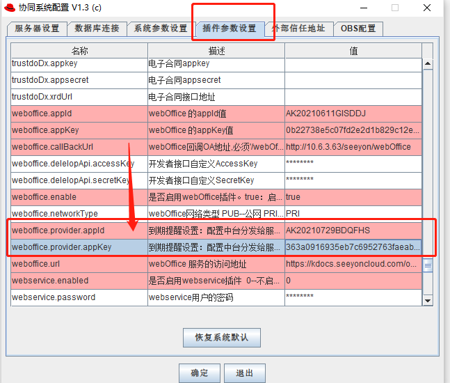 weboffice.appKey=0b22738e5c07fd2e2d1b829c12e536e7 (金山应用APPKEY,根据实际情况修改)