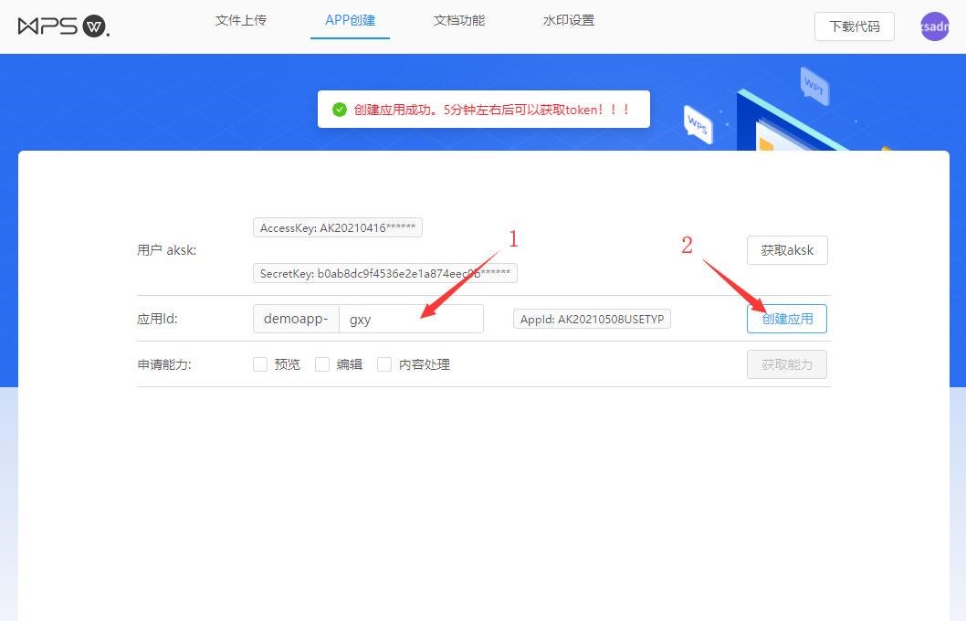创建应用: