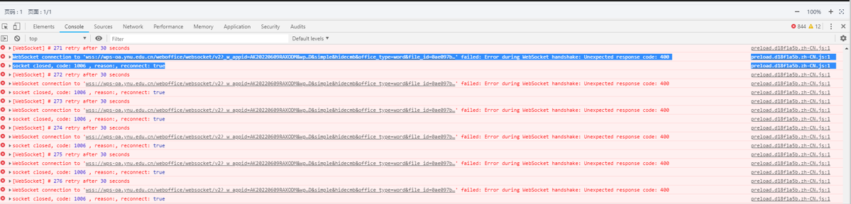 F12打开浏览器,控制台Console大量报错:WebSocket相关报错