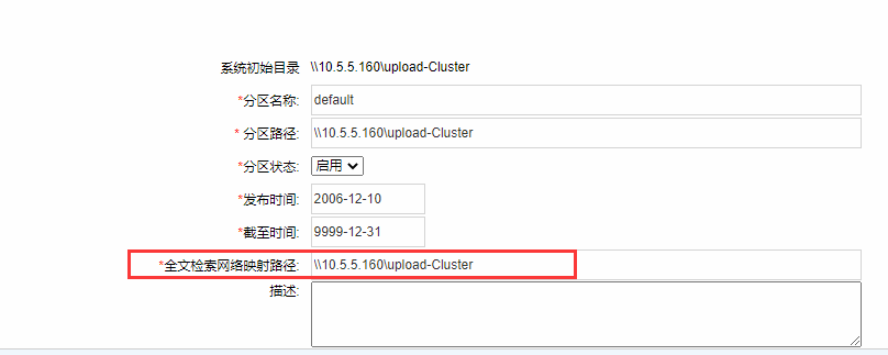 - 系统管理员账号---系统分区设置:分离部署的情况,文件微服务服务器需要能正常访问协同的分区附件,"文件微服务网络映射路径"设置为协同分区附件所在目录映射的网络路径