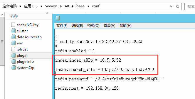 保存配置后,相关信息写入协同系统安装目录base\conf\plugin.properties文件,重启协同系统服务,使之生效。