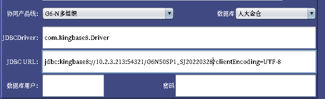 JDBC URL修改ip为需要升级的数据库ip,端口对应数据库的端口,人大金仓数据库,请修改后面的数据库名,达梦数据库需根据实际创建的实例名修改SEEYON的值(如果不确定,请参考中间件中的JDBC配置中填写的内容)