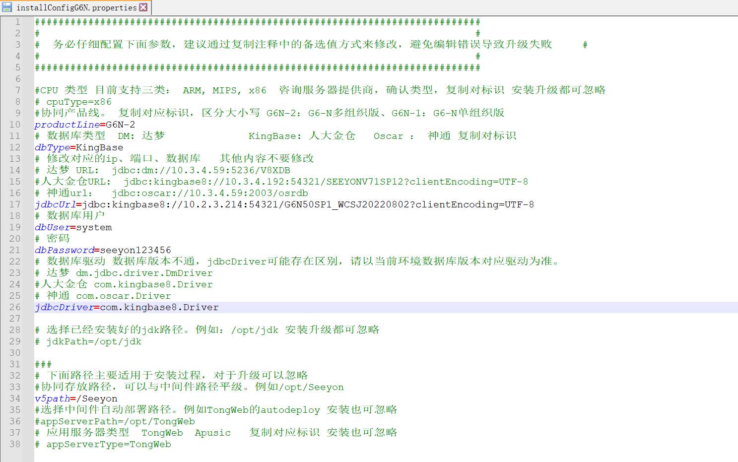 配置参数文件,文件路径为:安装路径下 cfgHome/installConfigG6N.properties