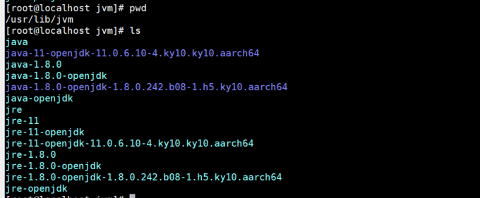 路径跳转到A8下:cd /home/Seeyon/A8,保证此时看到的目录跟步骤4的一样说明拷贝成功。下一步是替换jdk,信创环境不一定能使用默认的jdk,需要从各操作系统厂商下载官方的jdk8来替换(实测openjdk-java8能够使用):