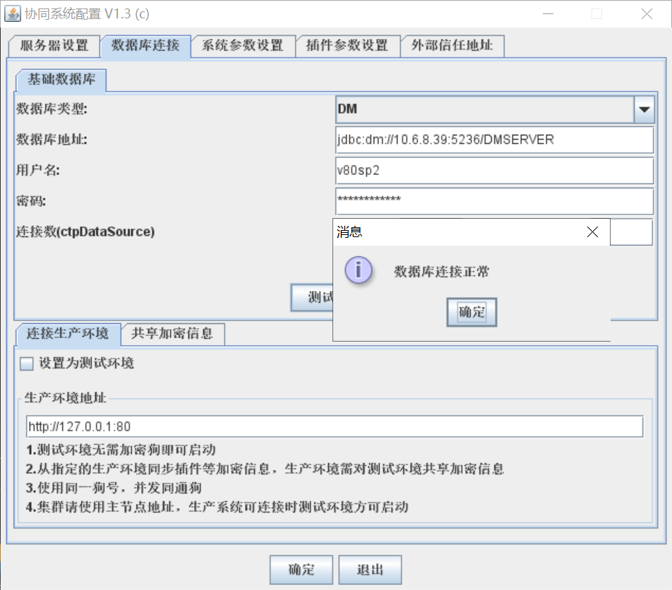 数据库名:初始化时的数据库名(oracle数据库填入server name或者pid,和标准产品的SeeyonConfig配置类似。)